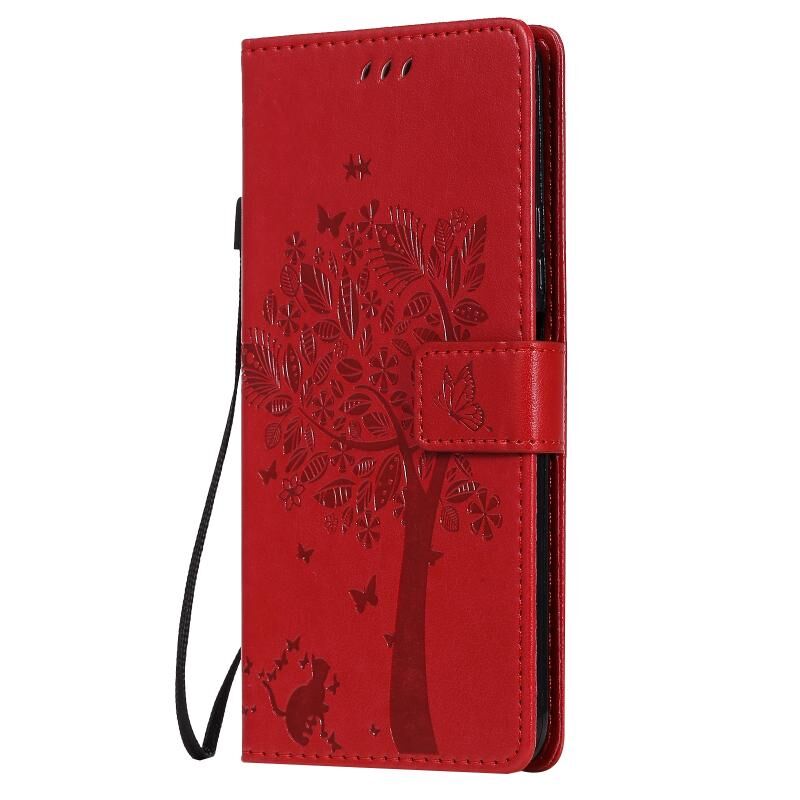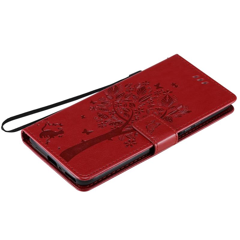 Θήκη Huawei Y9a με σχέδιο Δέντρου & Γάτας, εκτύπωση με πίεση, οριζόντια αναδίπλωση, από δερματίνη PU με βάση στήριξης & υποδοχές καρτών & πορτοφόλι & κορδόνι (Χρυσό)