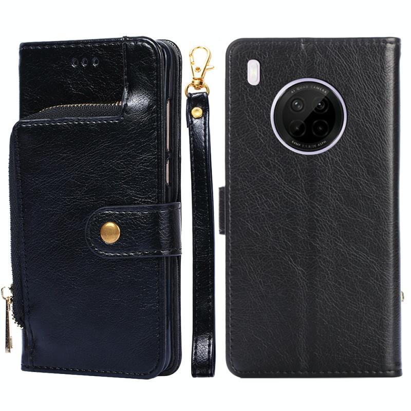 Θήκη Huawei Y9a, Δερμάτινη οριζόντια θήκη με φερμουάρ, PU + TPU, με βάση, θήκη καρτών, πορτοφόλι & λουρί (Καφέ)
