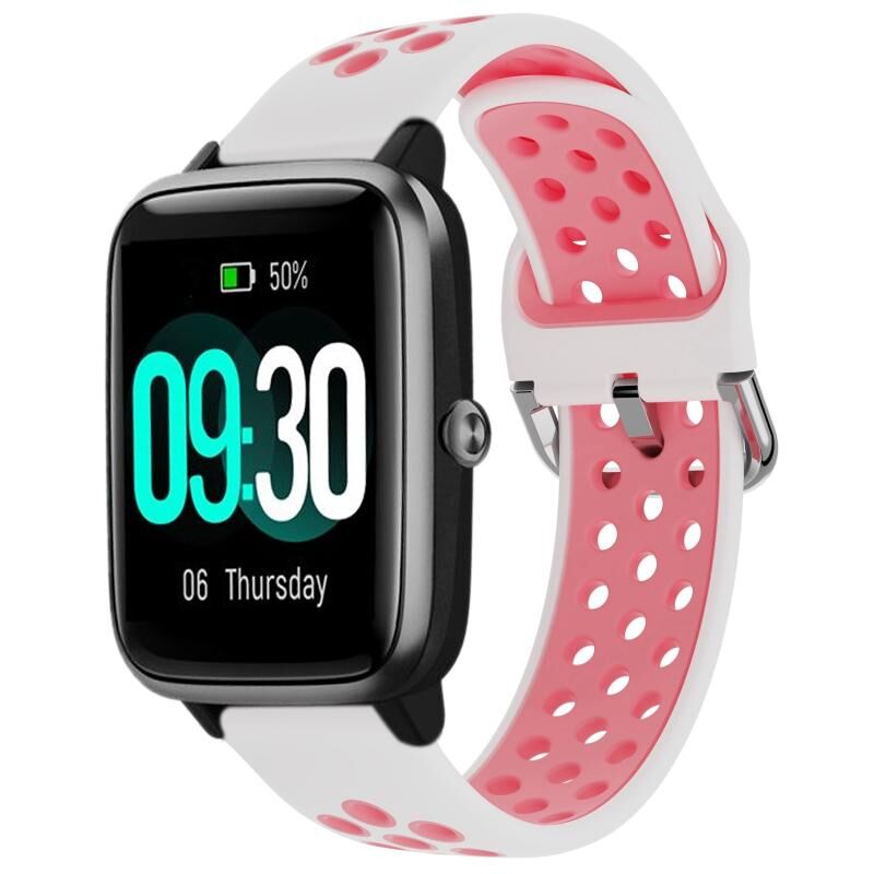 For ID205 / Willful SW021 19mm Silicone Two-color Sports Watch Band(White+Pink)
