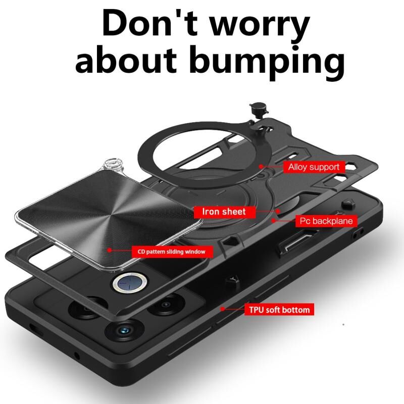 Θήκη τηλεφώνου για Infinix GT 20 Pro με υφή CD, συρόμενο προστατευτικό κάμερας Camshield και μαγνητική βάση (Ροζ)
