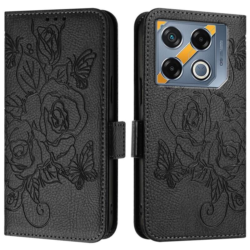 Για Infinix GT 20 Pro ανάγλυφο Rose RFID Anti-theft δερμάτινη θήκη τηλεφώνου (Μαύρο)