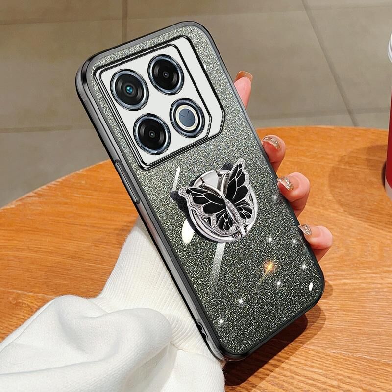 Για το Infinix GT 20 Pro Επιμεταλλωμένο διαβάθμιση Glitter πεταλούδα κάτοχος TPU τηλέφωνο υπόθεση (μαύρο)