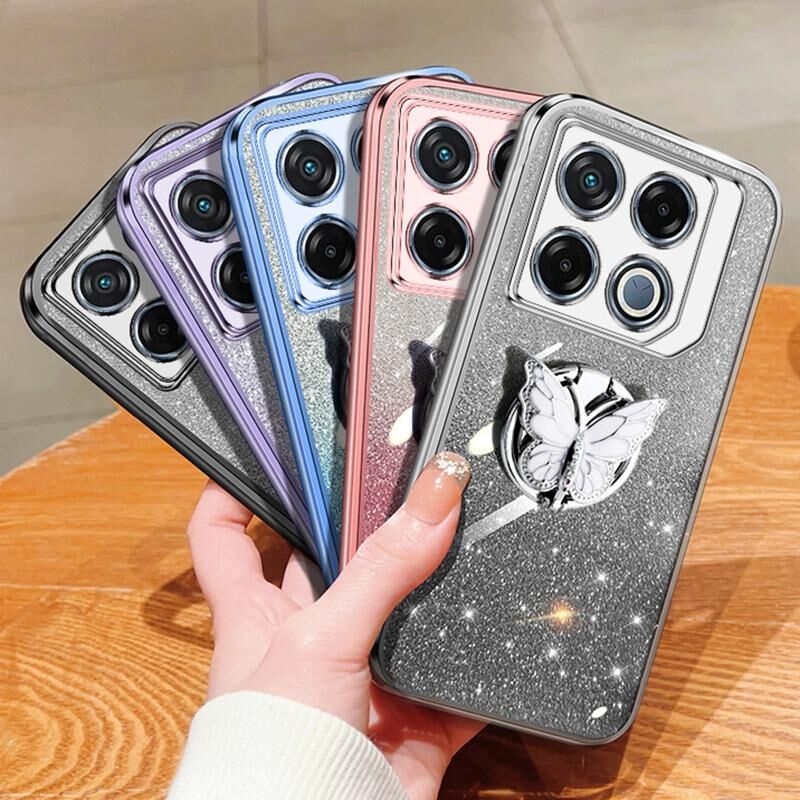 Για το Infinix GT 20 Pro Επιμεταλλωμένο διαβάθμιση Glitter πεταλούδα κάτοχος TPU τηλέφωνο υπόθεση (ροζ)