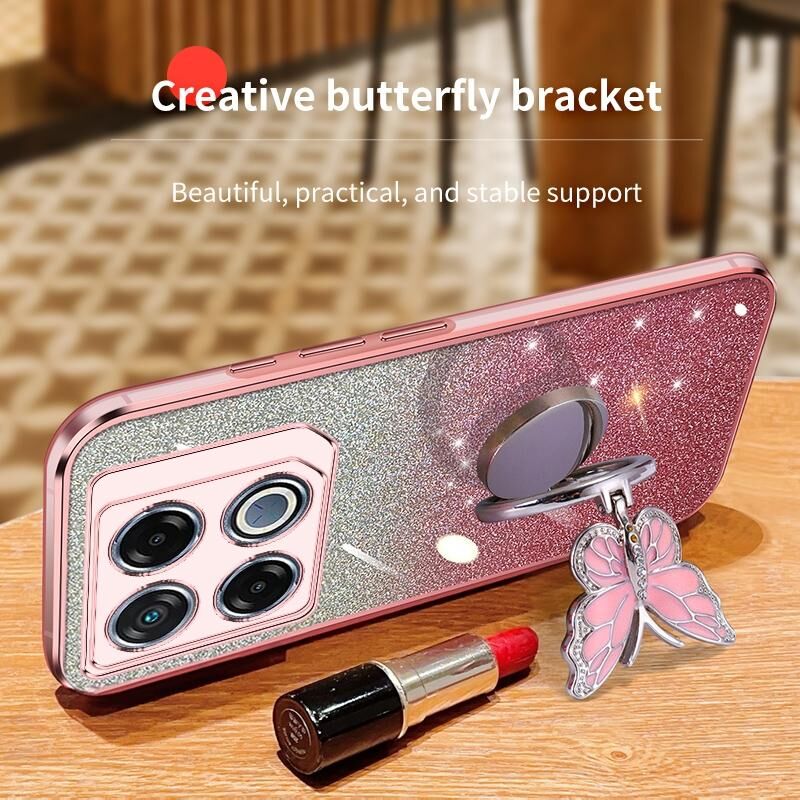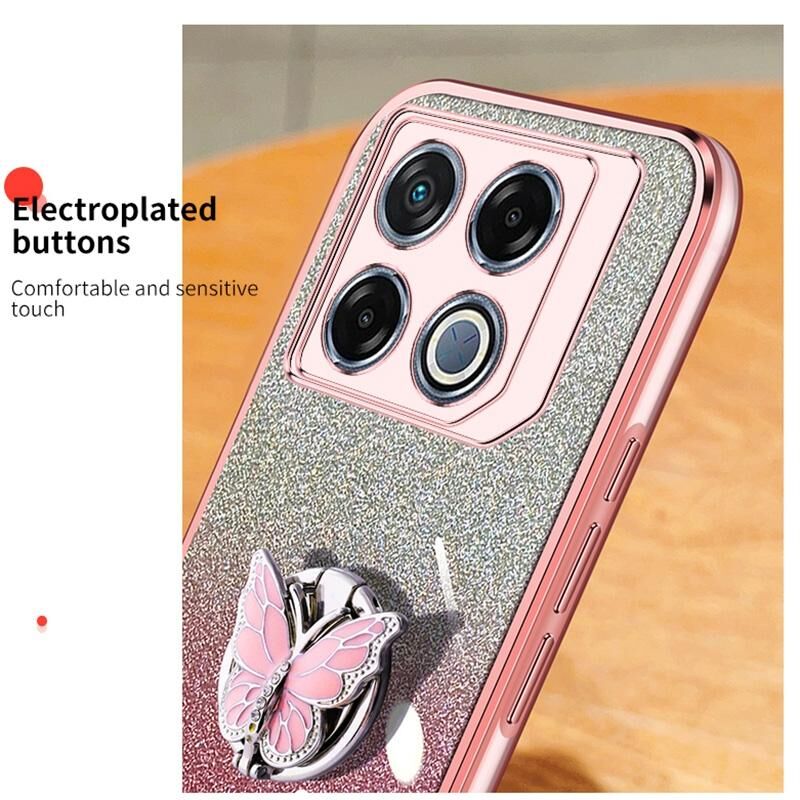 Για Infinix GT 20 Pro Επιμεταλλωμένο διαβάθμιση Glitter πεταλούδα κάτοχος TPU τηλέφωνο υπόθεση (μωβ)