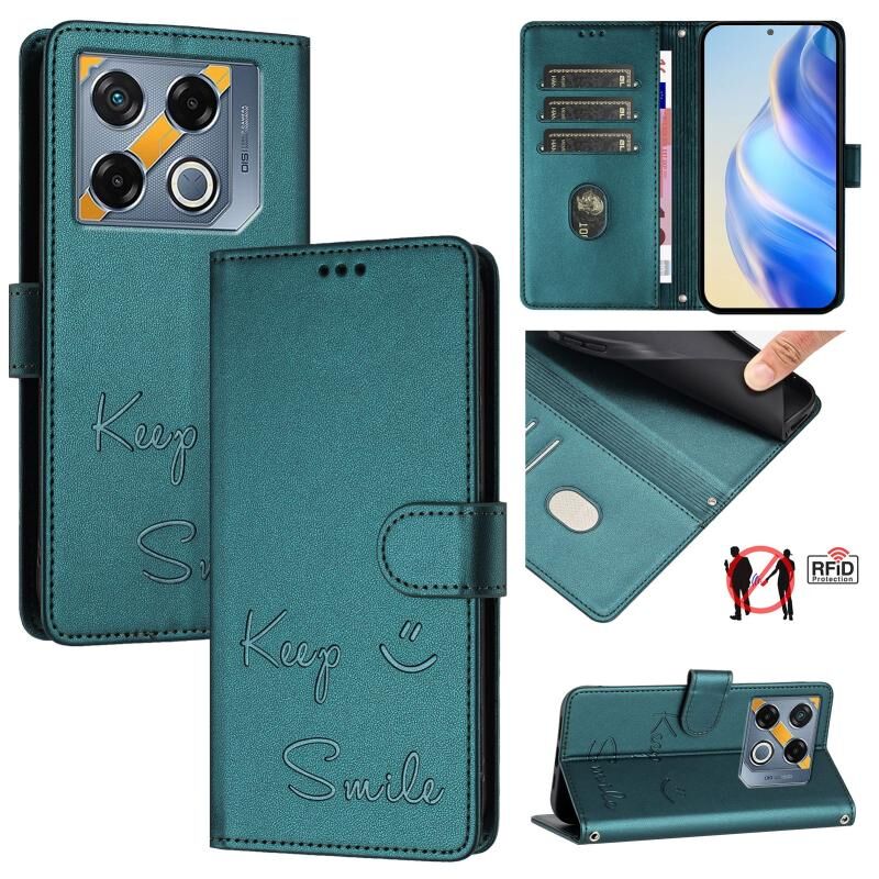 Για Infinix GT 20 Pro X6871 Χαμόγελο ανάγλυφο RFID δερμάτινη θήκη τηλεφώνου (Πράσινο παγώνι)