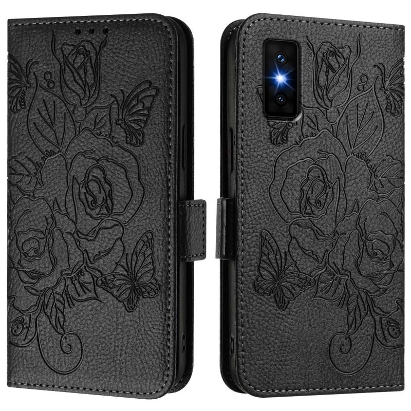 For Infinix GT 30 Pro Embossed Rose RFID Anti-theft Leather Phone Case(Black)