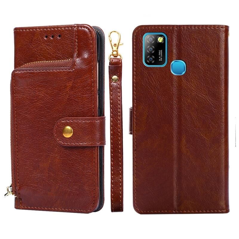 Για Infinix Hot 10 Lite / Smart 5 φερμουάρ τσάντα δερμάτινη θήκη τηλεφώνου (καφέ)