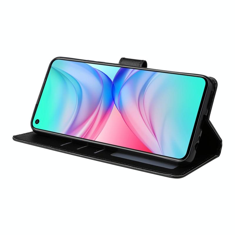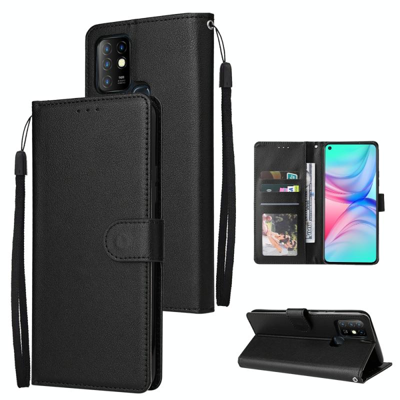 Θήκη δέρματος οριζόντιας αναδίπλωσης, πολυλειτουργική για Infinix Hot 10 με τρεις υποδοχές καρτών (Κόκκινο)