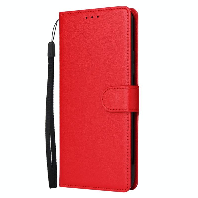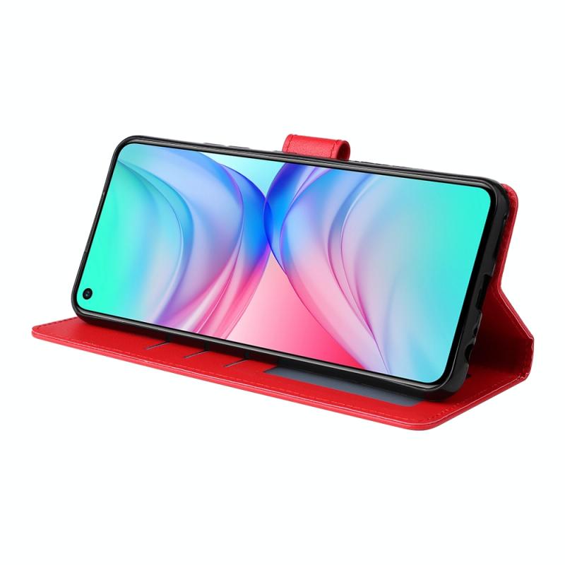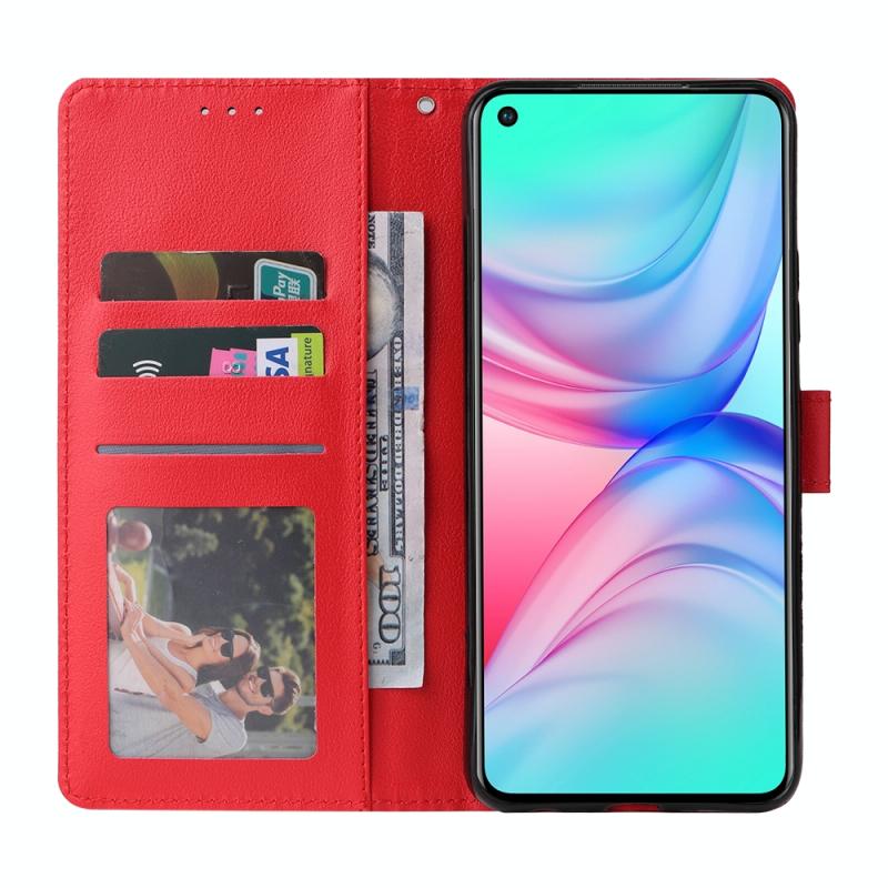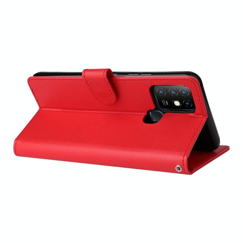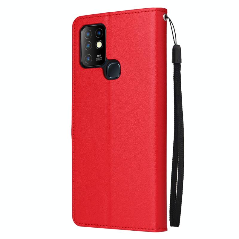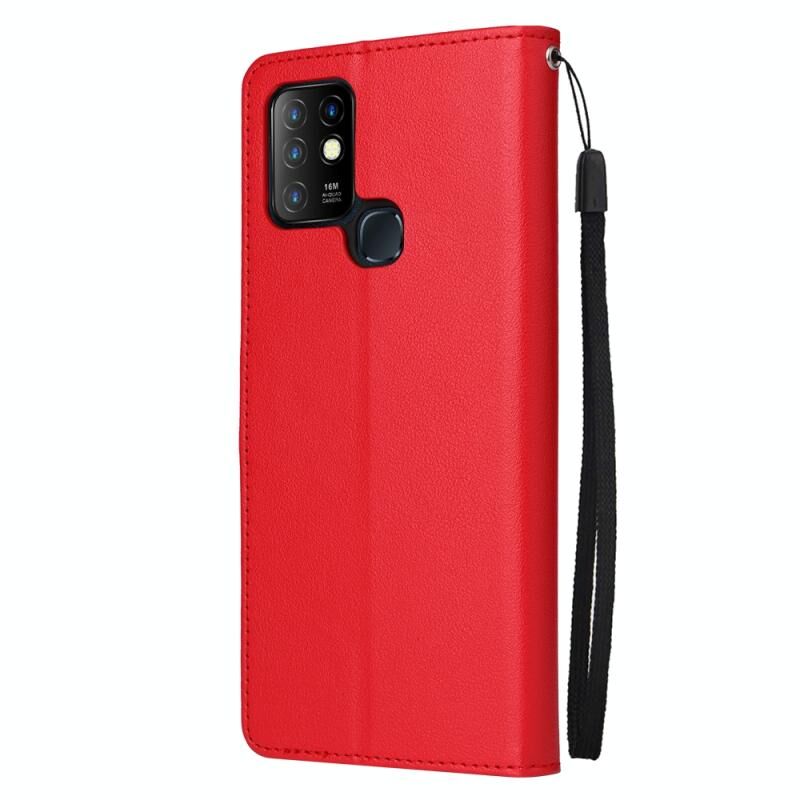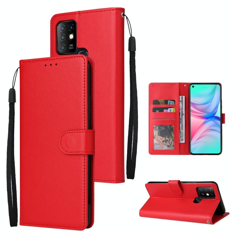 Θήκη δέρματος οριζόντιας αναδίπλωσης, πολυλειτουργική για Infinix Hot 10 με τρεις υποδοχές καρτών (Κόκκινο)