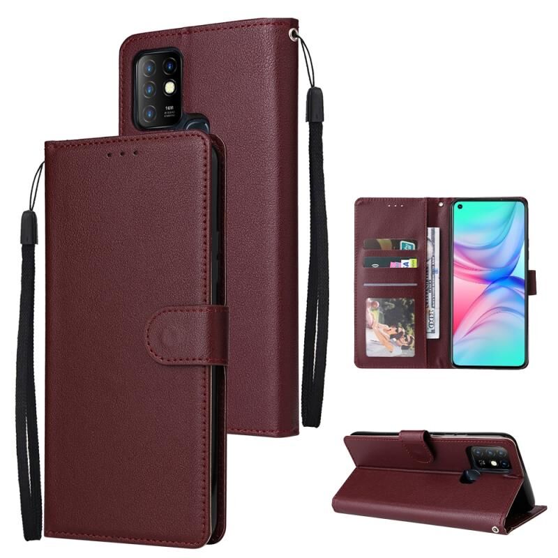 Για Infinix Hot 10 Πολυλειτουργική οριζόντια Flip δερμάτινη θήκη με τρεις υποδοχές για κάρτες (κόκκινο κρασί)