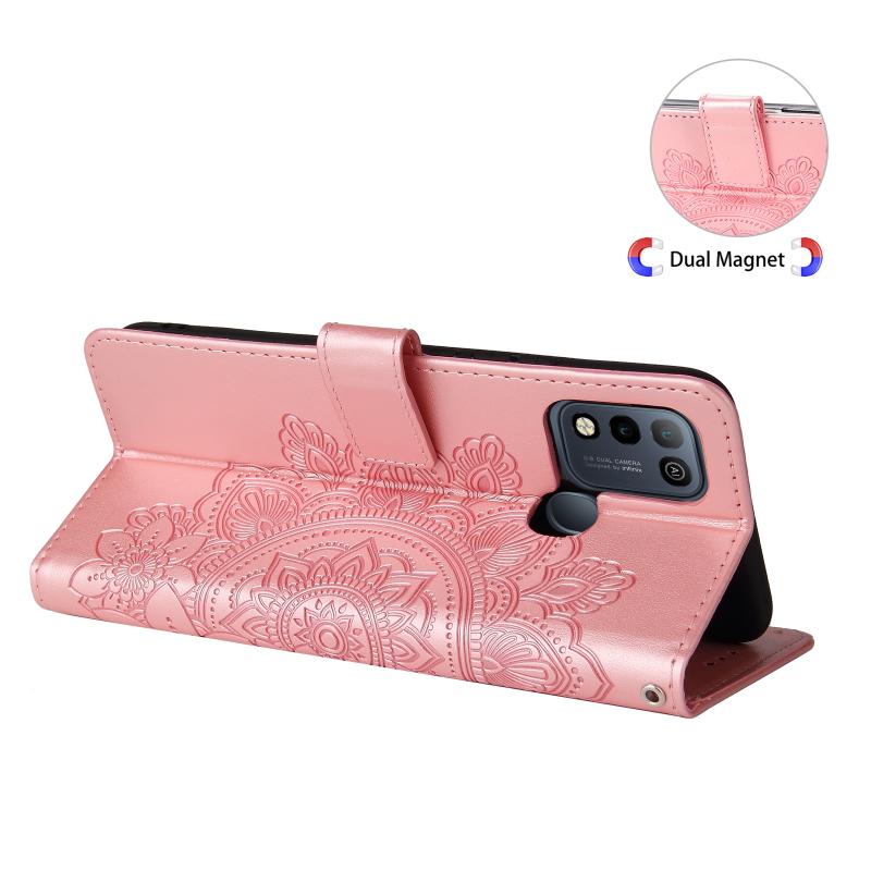 Θήκη για Infinix Hot 10 Play με 7 πέταλα λουλουδιών, ανάγλυφο σχέδιο, οριζόντια αναδίπλωση από δερματίνη PU με βάση στήριξης & υποδοχές καρτών & πορτοφόλι & κορνίζα φωτογραφιών (Ροζ χρυσός)