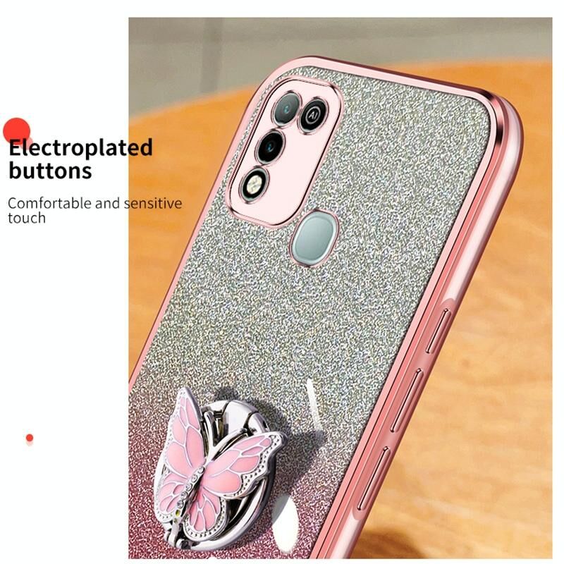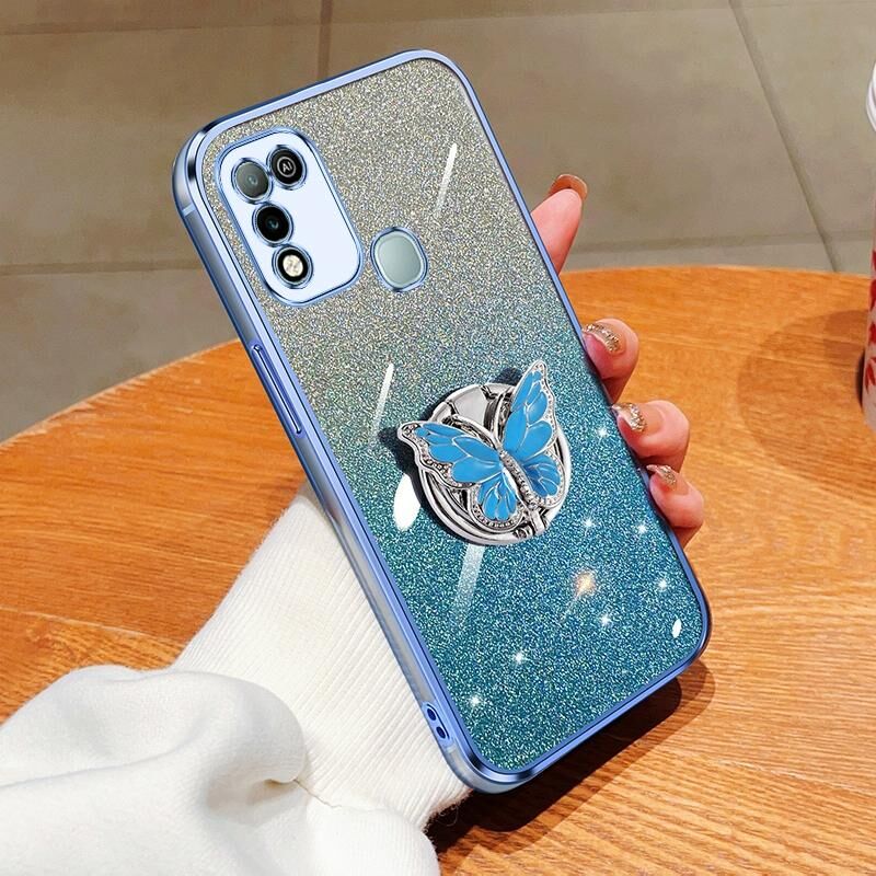 Για το Infinix Hot 10 Play Plated Gradient Glitter πεταλούδα κάτοχος TPU τηλέφωνο υπόθεση (Sierra Blue)