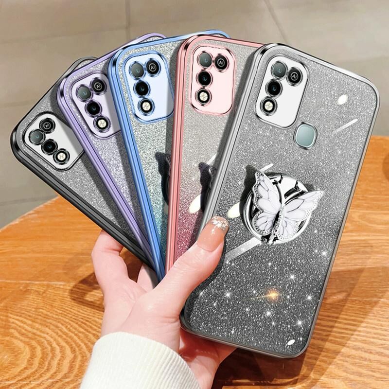 Για το Infinix Hot 10 Play Plated Gradient Glitter πεταλούδα κάτοχος TPU τηλέφωνο υπόθεση (ασημί)