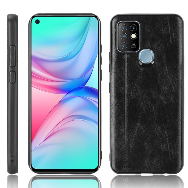 Για το Infinix Hot 10 Shockproof Ράψιμο μοτίβο αγελάδας δέρμα PC + PU + TPU υπόθεση (Μαύρο) (idewei)