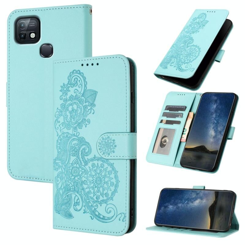 Για Infinix Hot 10i Datura λουλούδι ανάγλυφο Flip υπόθεση τηλεφώνου δέρμα (γαλάζιο)