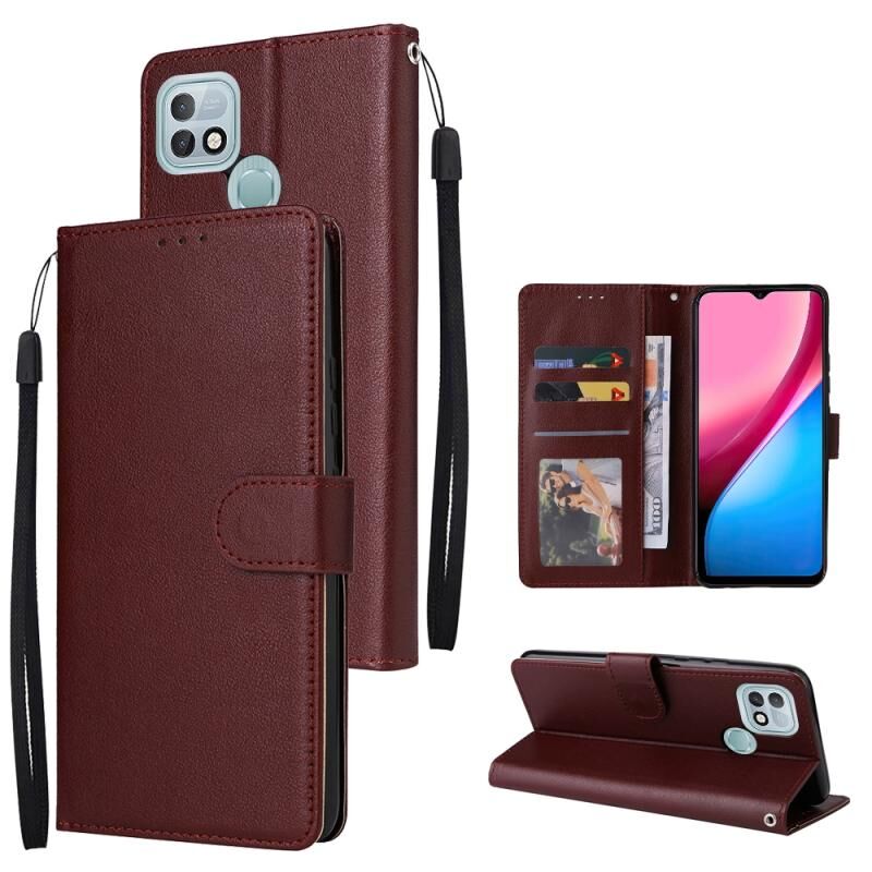 Για Infinix Hot 10i Πολυλειτουργική οριζόντια Flip δερμάτινη θήκη με τρεις υποδοχές για κάρτες (κόκκινο κρασί)