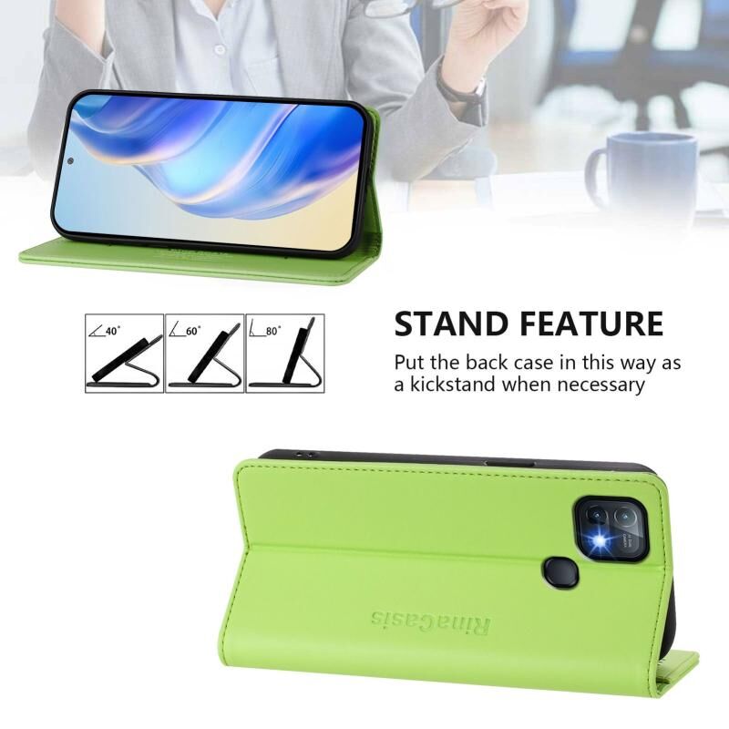 Θήκη τηλεφώνου δερμάτινη με μαγνητική απορρόφηση και διπλή πτύχωση για Infinix Hot 10i RC01 (Μέντας Πράσινο)