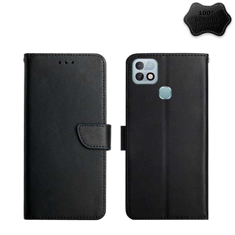 Θήκη τηλεφώνου οριζόντιας αναδίπλωσης από γνήσιο δέρμα για Infinix Hot 10i/Smart 5 Pro, ανθεκτική στα δακτυλικά αποτυπώματα (Μαύρο)