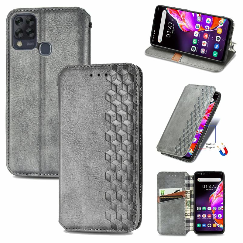 For Infinix Hot 10T Cubic Grid Pressed Horizontal Flip Magnetic PU Leather Case with Holder & Card Slots & Wallet(Grey)