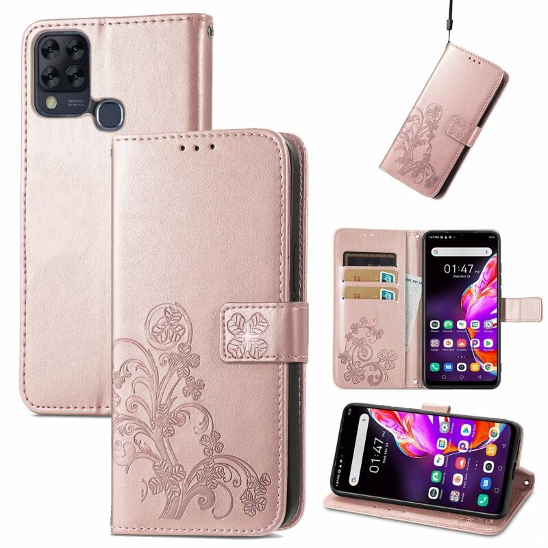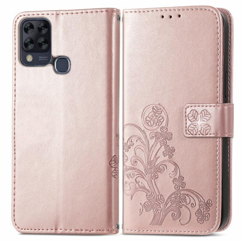 Για Infinix HOT 10T Four-φύλλο κούμπωμα ανάγλυφο αγκράφα κινητό τηλέφωνο προστασία δερμάτινη θήκη με κορδόνι & υποδοχή κάρτας & πορτοφόλι & λειτουργία βραχίονα (Rose Gold)