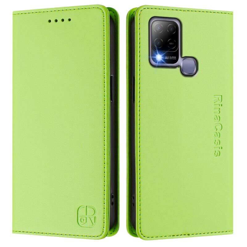 Θήκη τηλεφώνου από δέρμα με μαγνητική απορρόφηση και διπλή πτύχωση για Infinix Hot 10T / Hot 10S X689 RC01 (Πράσινο του γρασιδιού)