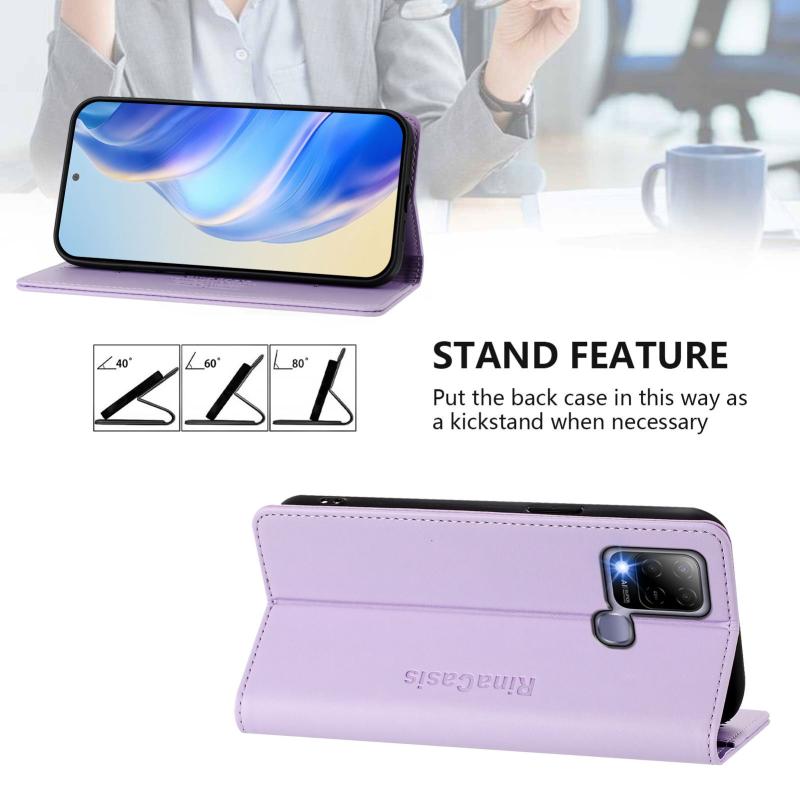 Θήκη τηλεφώνου από δέρμα με μαγνητική απορρόφηση και διπλή πτύχωση για Infinix Hot 10T / Hot 10S X689 RC01 (Ανοιχτό Μωβ)
