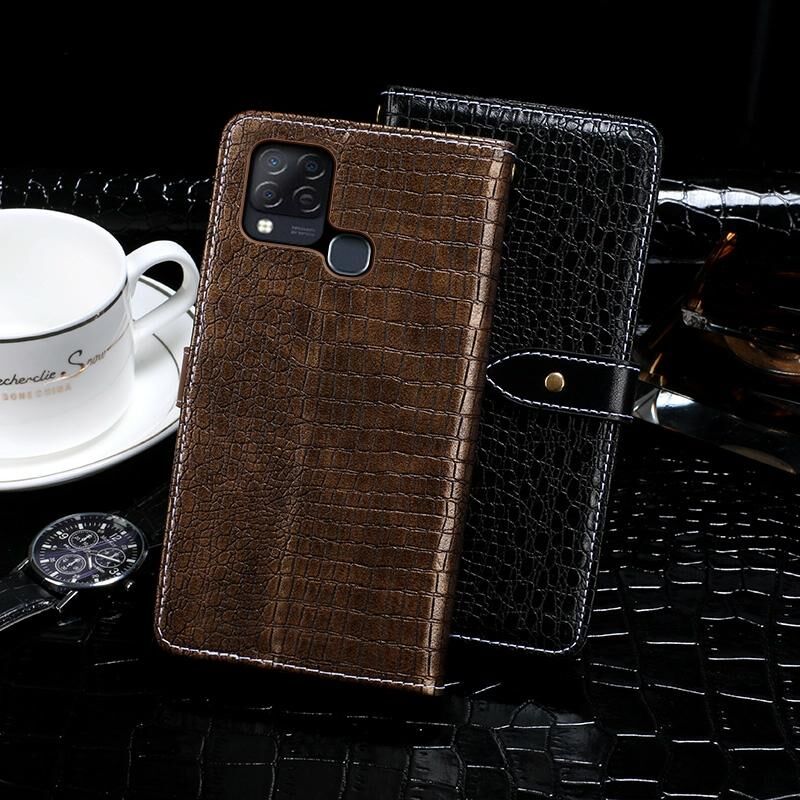 Θήκη δέρματος οριζόντιας αναδίπλωσης με υφή κροκόδειλου idewei για Infinix Hot 10T με βάση & υποδοχές καρτών & πορτοφόλι (Μαύρο) (idewei)
