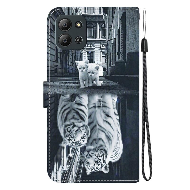 For Infinix Hot 11 2022 Crystal Texture Colored Drawing Leather Phone Case(Cat Tiger Reflection)