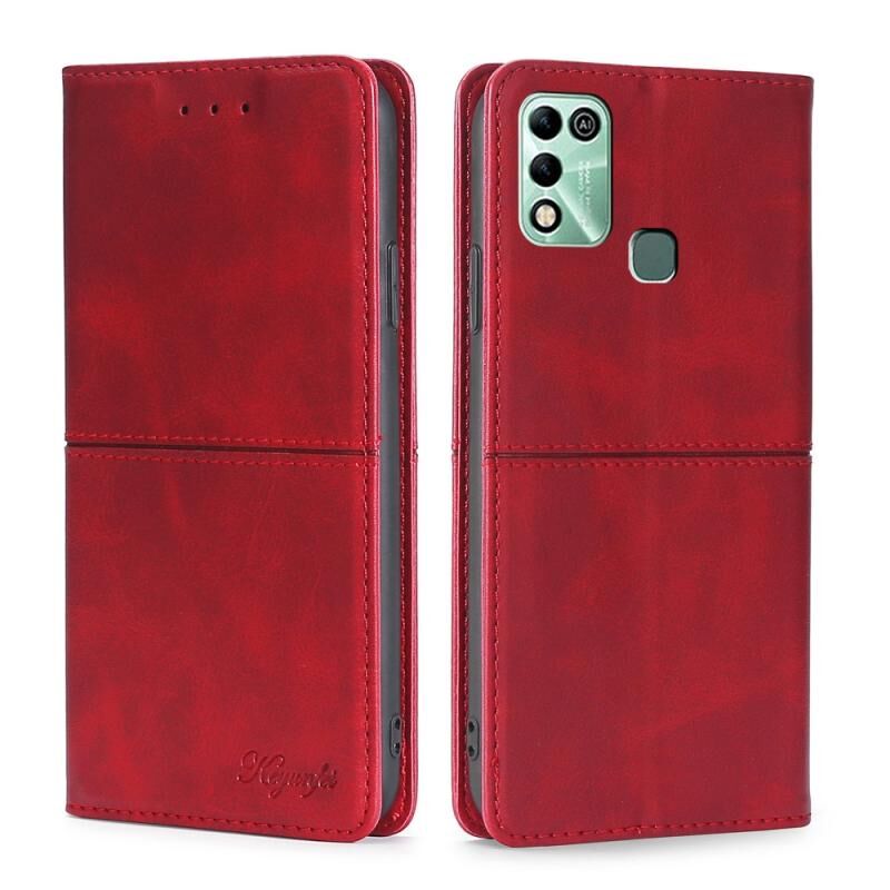 Για Infinix Hot 11 Play Cow Texture μαγνητική οριζόντια Flip δέρμα τηλέφωνο υπόθεση (κόκκινο)