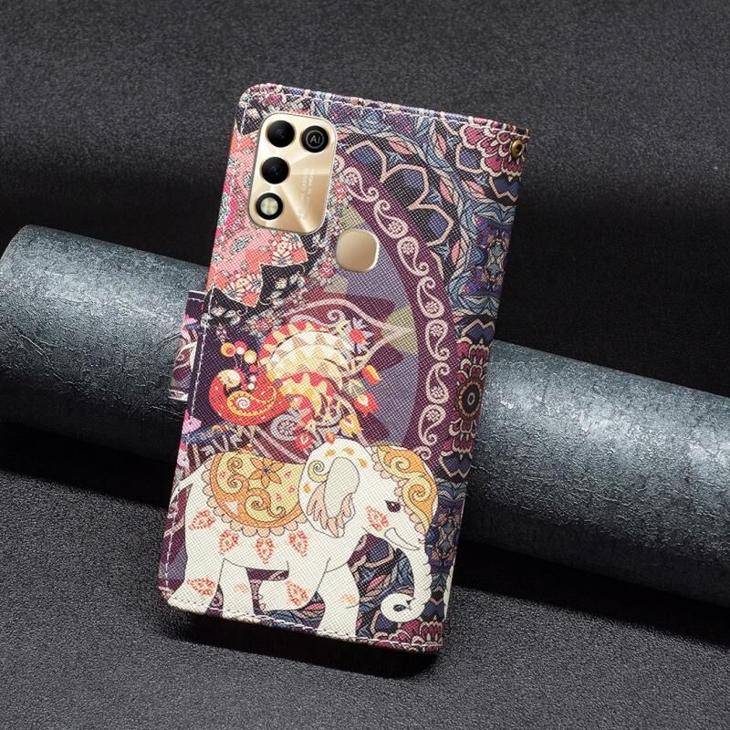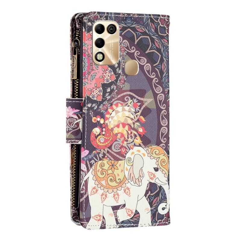 Θήκη τηλεφώνου δερμάτινη οριζόντια με φερμουάρ και σχέδια πολύχρωμης ζωγραφικής για Infinix Hot 11 Play/Hot 10 Play (Λουλούδια Ελέφαντες)
