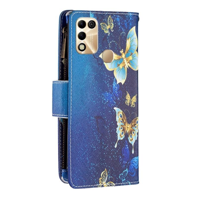 Θήκη τηλεφώνου δερμάτινη οριζόντια με φερμουάρ και σχέδια ζωγραφικής με χρώματα για Infinix Hot 11 Play/Hot 10 Play (Μωβ Πεταλούδα)