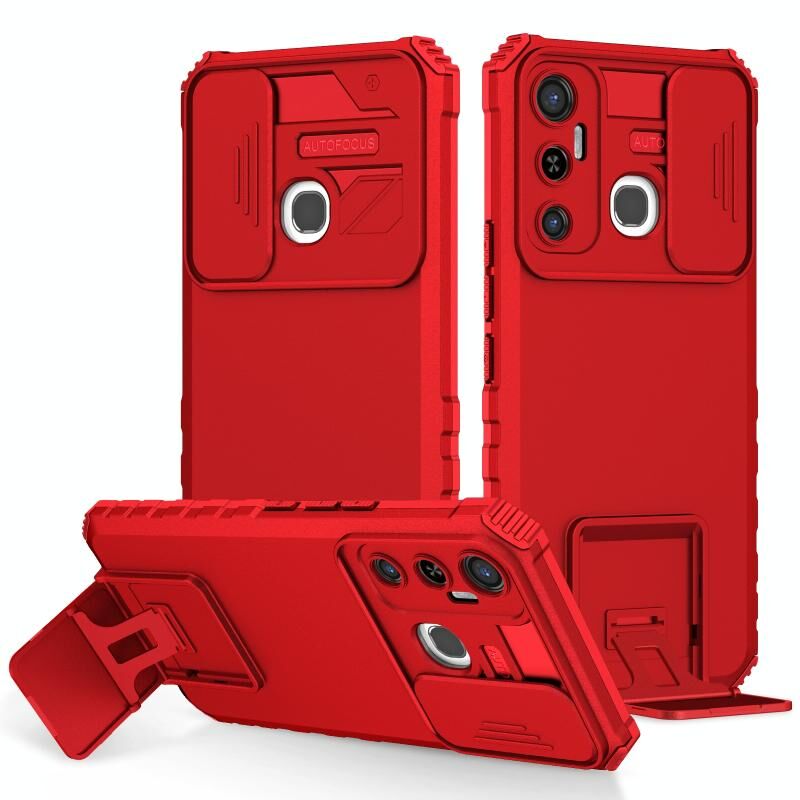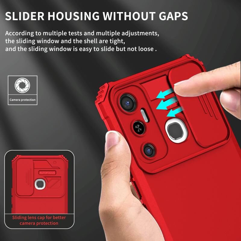 Για Infinix Hot 11 Στερεοσκοπική κάτοχος συρόμενη Camshield υπόθεση τηλεφώνου (κόκκινο)