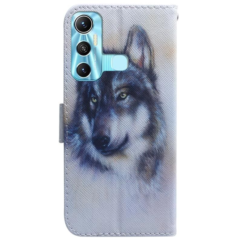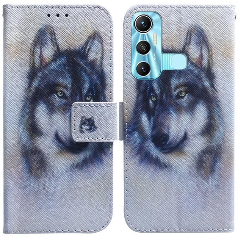 Θήκη τηλεφώνου από δέρμα με έγχρωμο σχέδιο για Infinix Hot 11 X662 (Λευκός Λύκος)