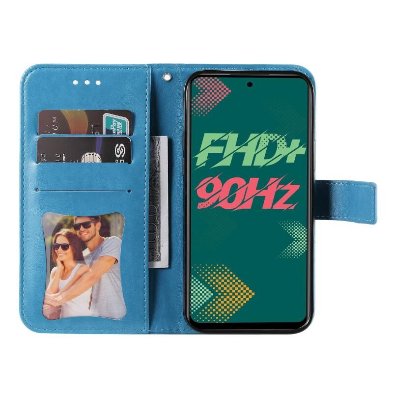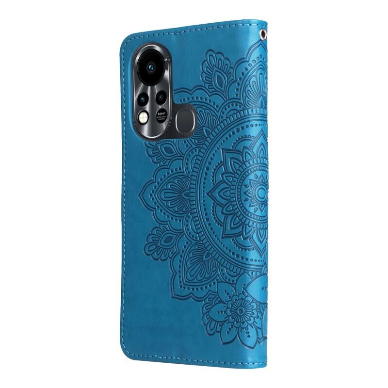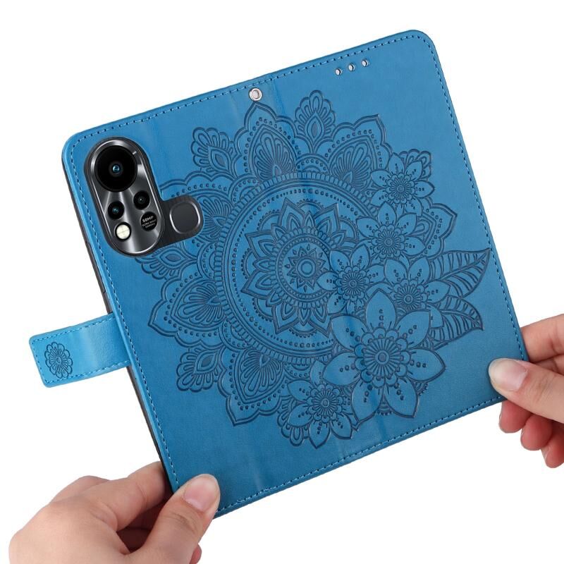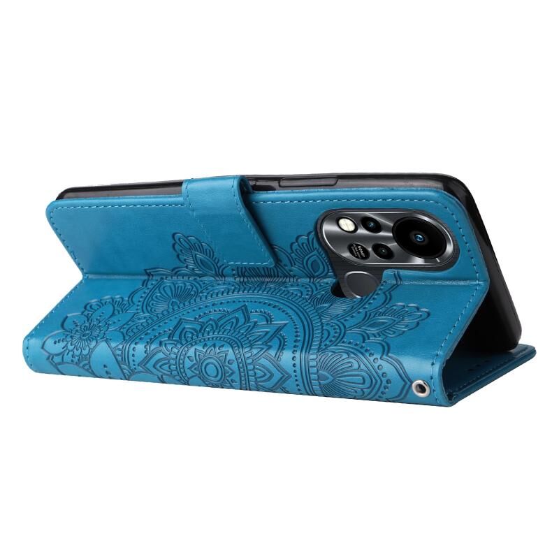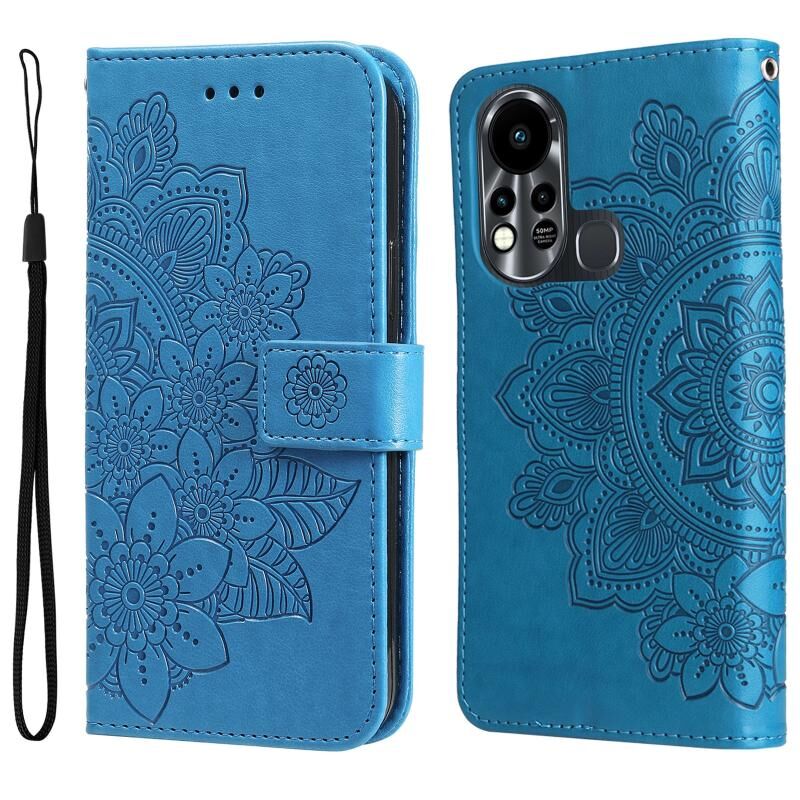 Για Infinix Hot 11S 7-πέταλο λουλούδια ανάγλυφο Flip υπόθεση τηλεφώνου δέρμα (μπλε)