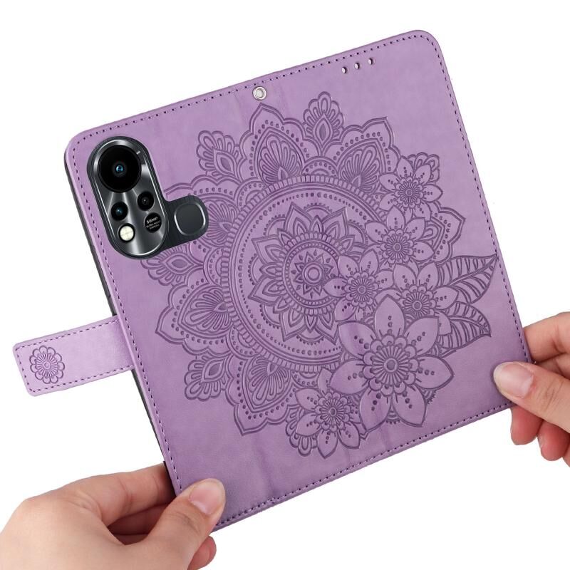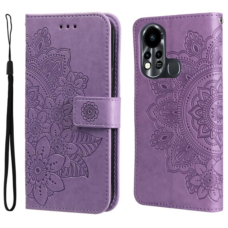 Για Infinix Hot 11S 7-πέταλο λουλούδια ανάγλυφο Flip υπόθεση τηλεφώνου δέρμα (Light Purple)