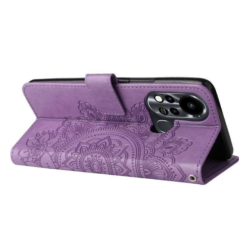 Για Infinix Hot 11S 7-πέταλο λουλούδια ανάγλυφο Flip υπόθεση τηλεφώνου δέρμα (ανοιχτό μωβ)
