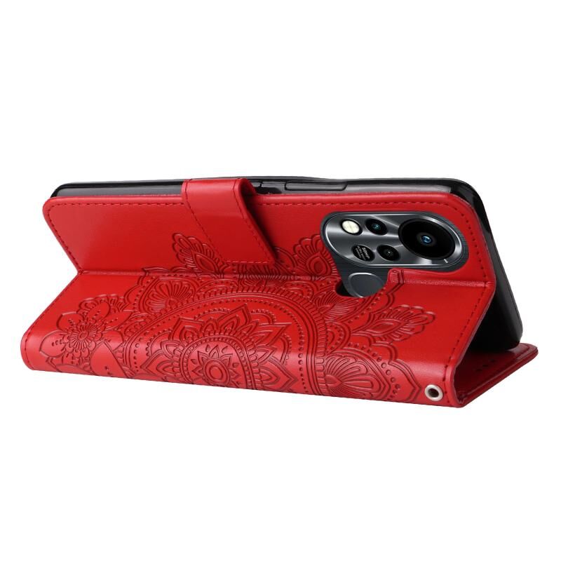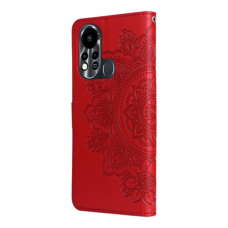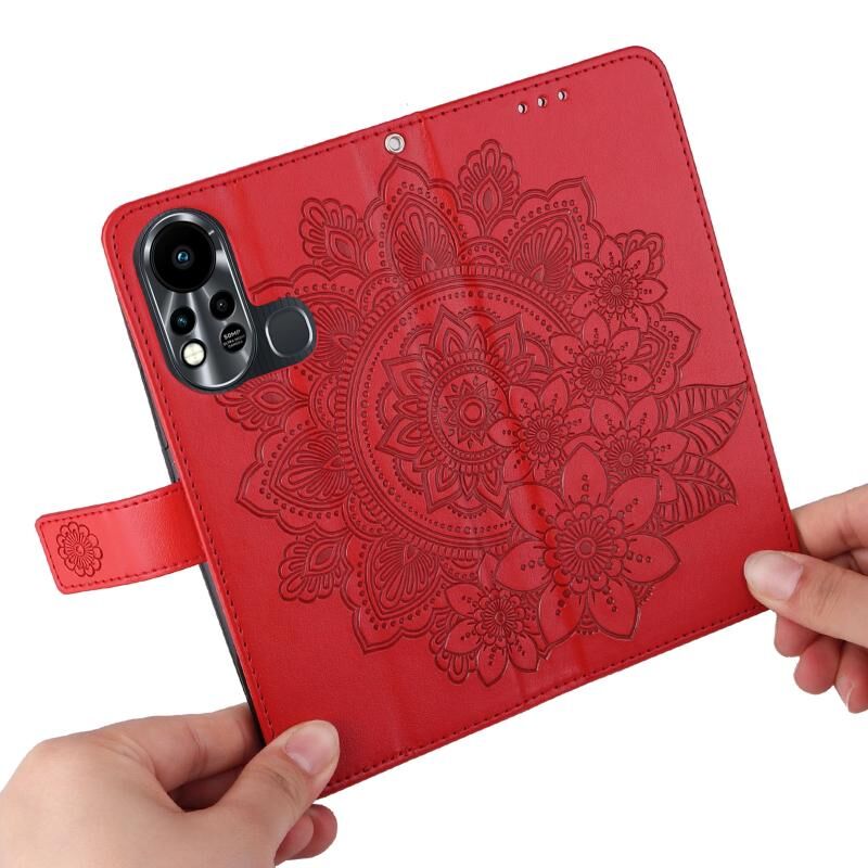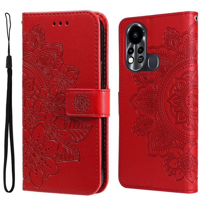 Για Infinix Hot 11S 7-πέταλο λουλούδια ανάγλυφο Flip υπόθεση τηλεφώνου δέρμα (κόκκινο)