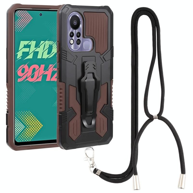 Για Infinix Hot 11s Armor Warrior Shockproof PC + TPU Lanyard τηλέφωνο υπόθεση (καφέ)