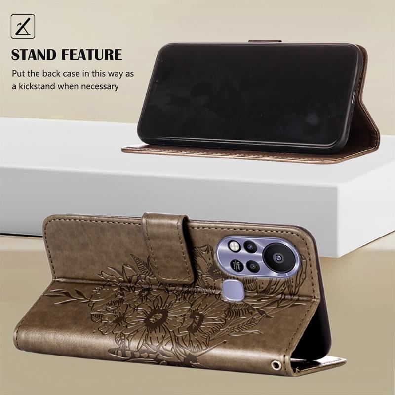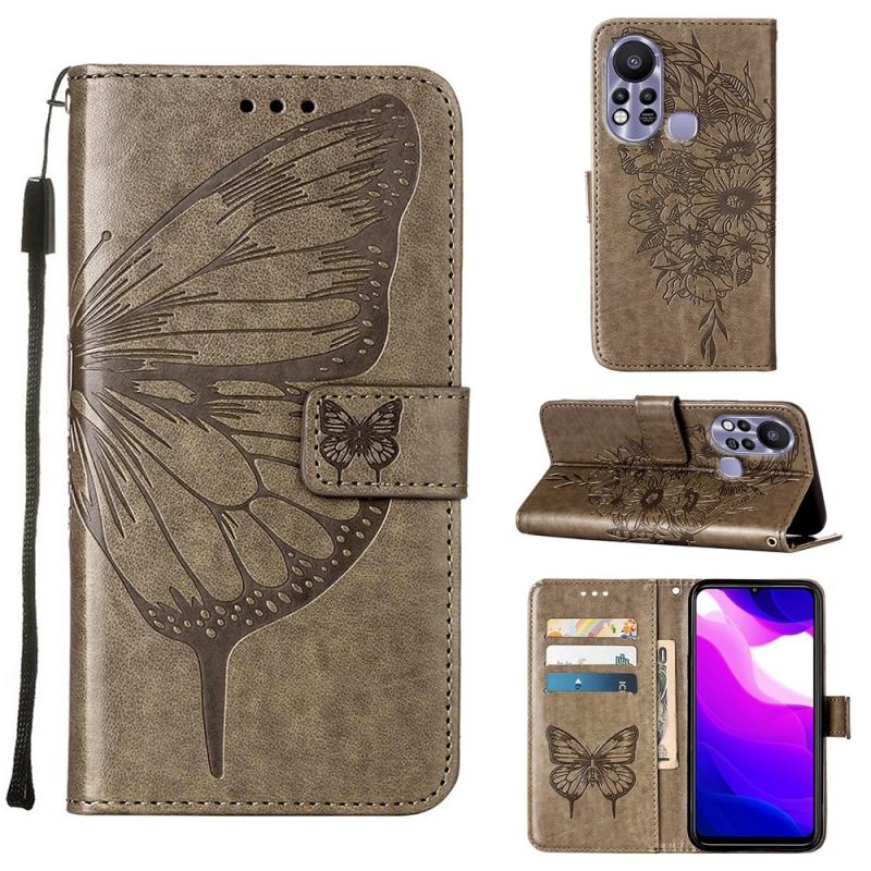 For Infinix Hot 11s Embossed Butterfly Leather Phone Case(Grey)