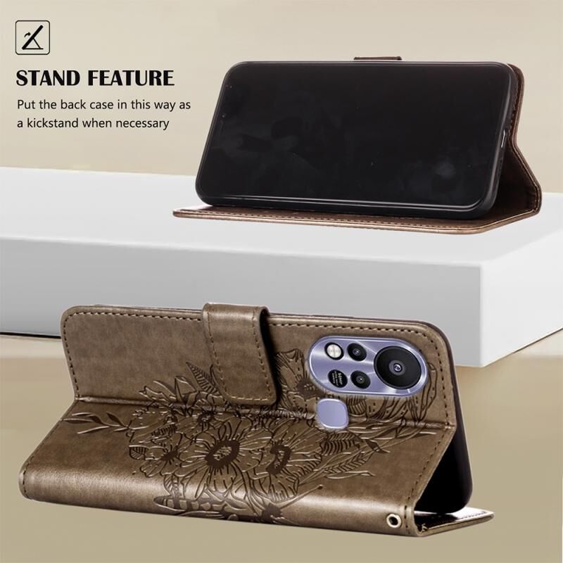 Θήκη τηλεφώνου δερμάτινη με ανάγλυφο σχέδιο πεταλούδας για Infinix Hot 11s (Γκρι)