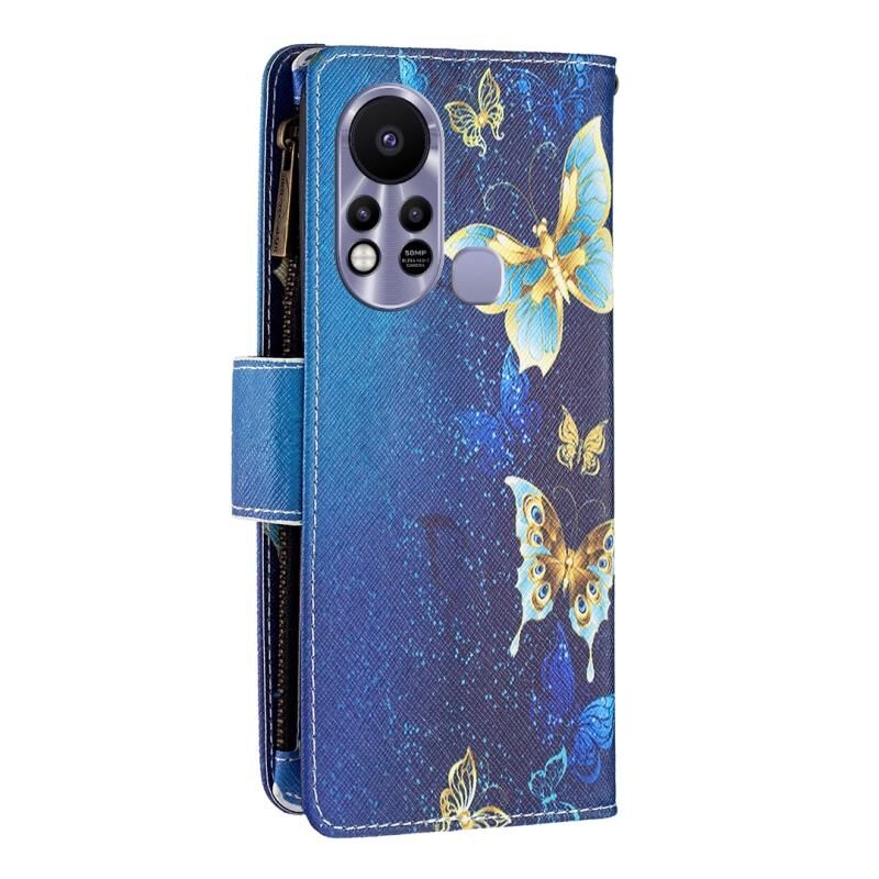 Θήκη τηλεφώνου από δέρμα με φερμουάρ και πολύχρωμο σχέδιο για Infinix Hot 11s NFC (Χρυσή Πεταλούδα)