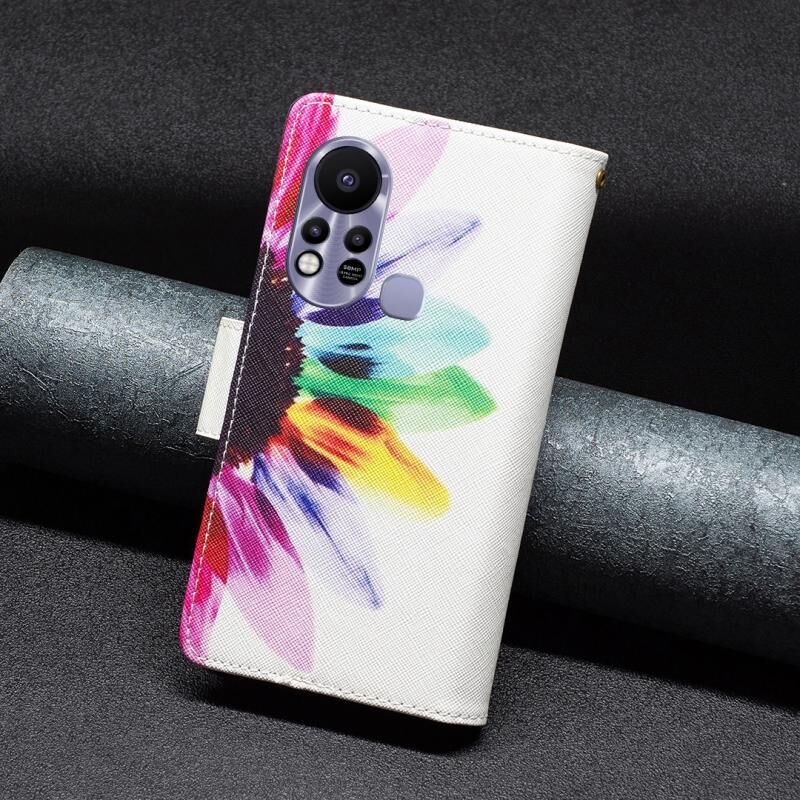 Θήκη τηλεφώνου από δέρμα με φερμουάρ και πολύχρωμο σχέδιο για Infinix Hot 11s NFC (Ηλιάνθος)