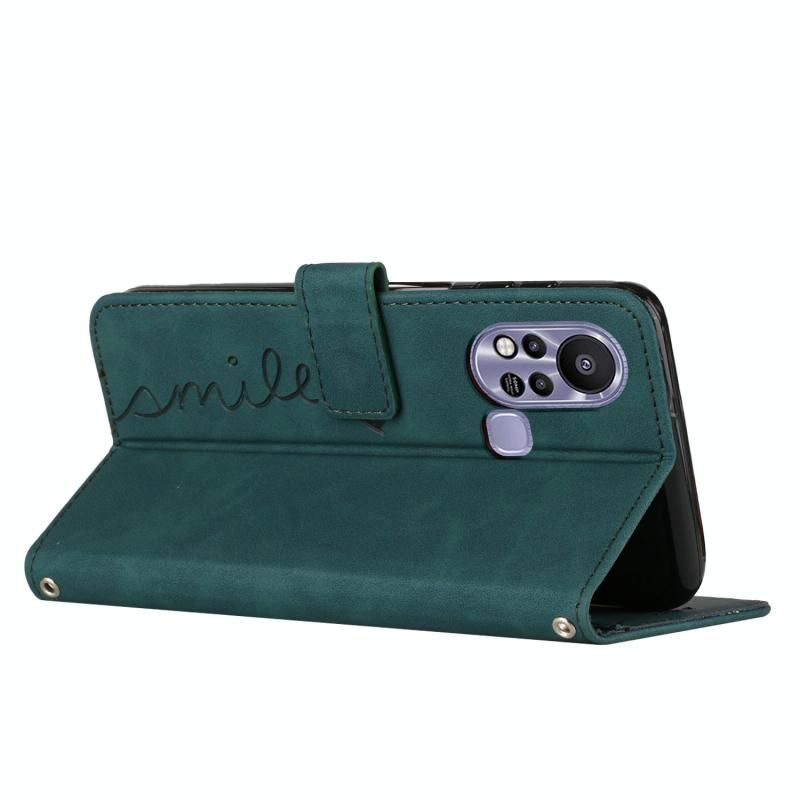 Για Infinix Hot 11s δέρμα αισθάνονται καρδιά μοτίβο δερμάτινη θήκη τηλεφώνου με κορδόνι (πράσινο)