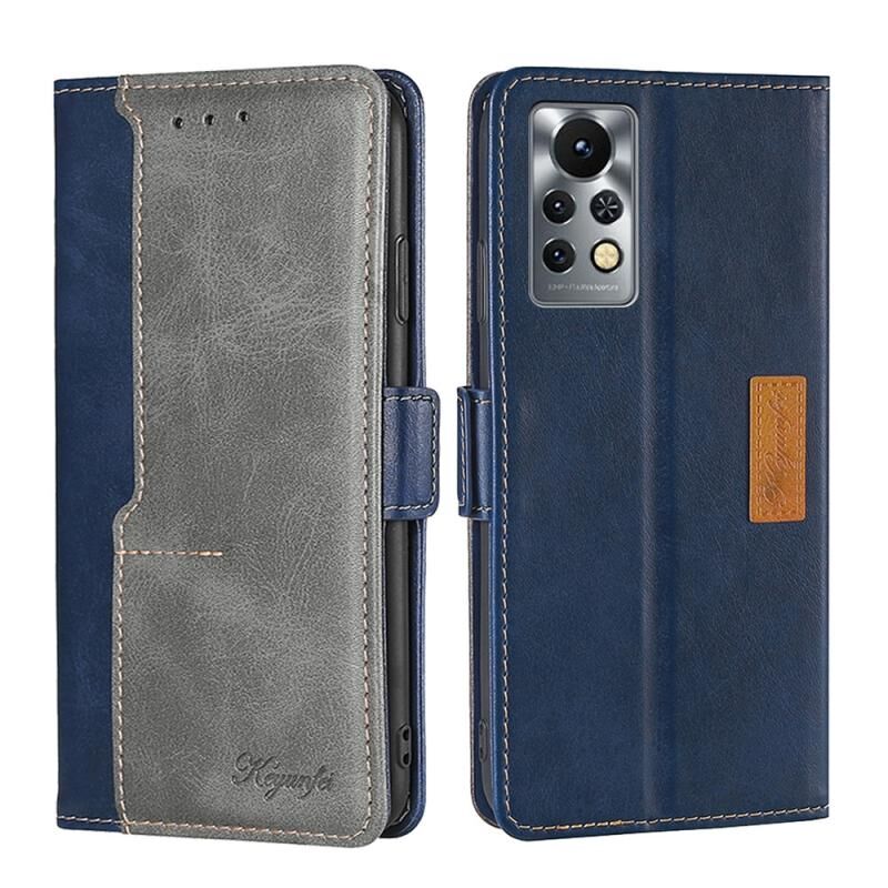 Για Infinix Hot 11S / X6812 αντίθεση χρώμα πλευρά πόρπη δερμάτινη θήκη τηλεφώνου υπόθεση (μπλε + γκρι)
