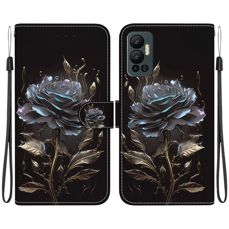 Θήκη τηλεφώνου από δέρμα με πολύχρωμη σχεδίαση και υφή κρυστάλλου για Infinix Hot 12 (Μωβ Παιώνια)