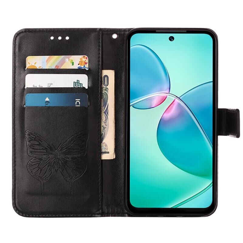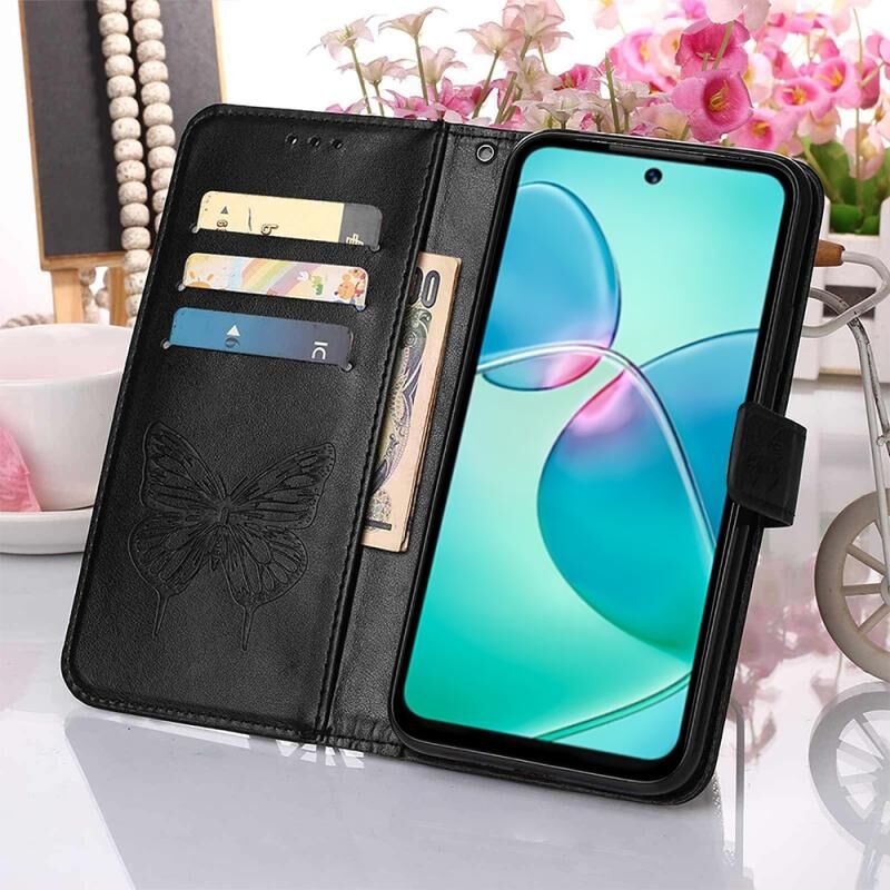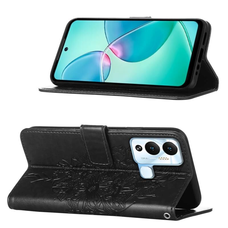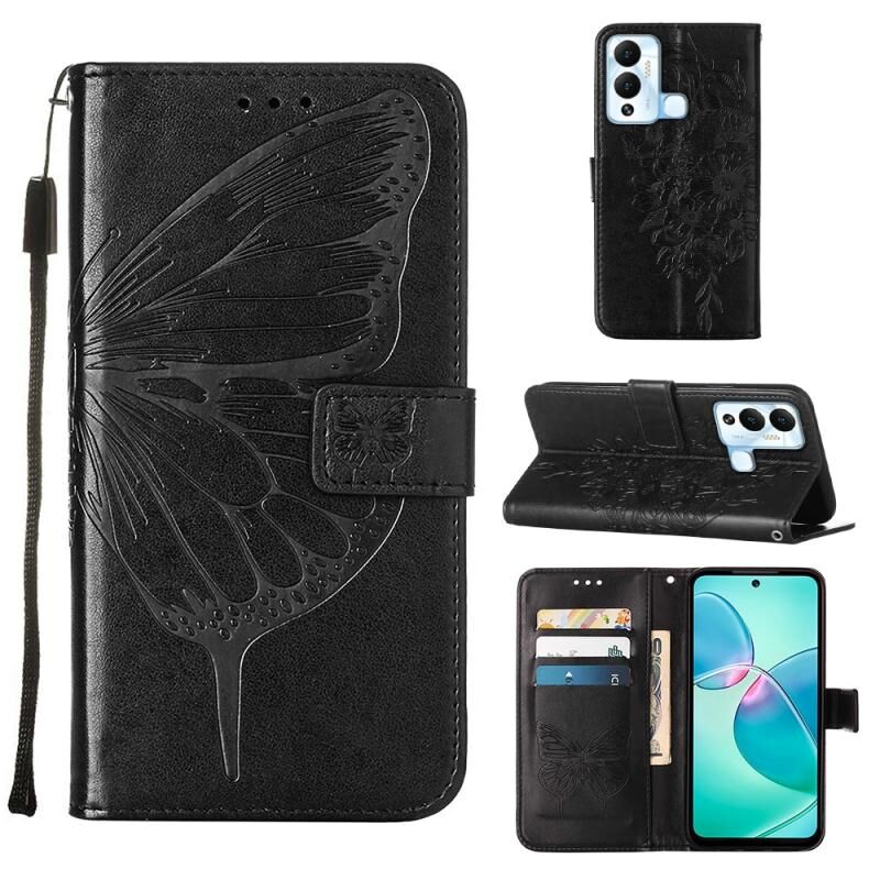 Θήκη τηλεφώνου από δέρμα με σχέδιο πεταλούδας σε ανάγλυφο για Infinix Hot 12 Play/Hot 12 Play NFC X6816C (Μπλε)