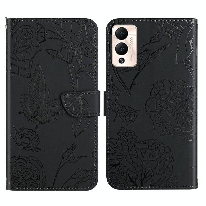 Για το Infinix Hot 12 Play HT03 δέρμα αίσθηση πεταλούδα ανάγλυφο Flip δέρμα τηλέφωνο υπόθεση (μαύρο)
