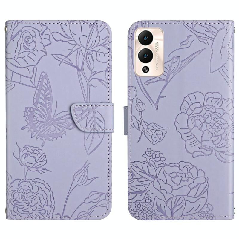 Για Infinix Hot 12 Play HT03 δέρμα αίσθηση πεταλούδα ανάγλυφο Flip υπόθεση τηλεφώνου δέρμα (μωβ)