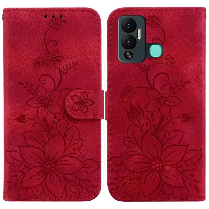For Infinix Hot 12 Play Lily Embossed Leather Phone Case(Red)