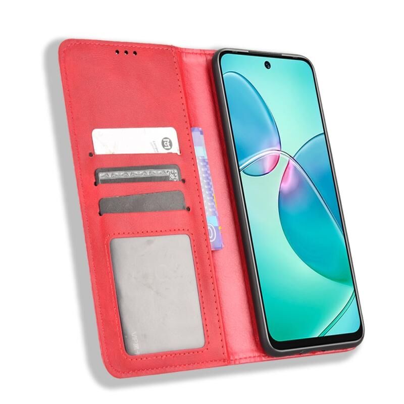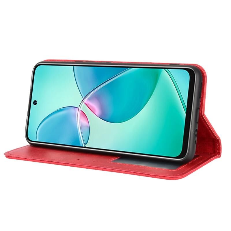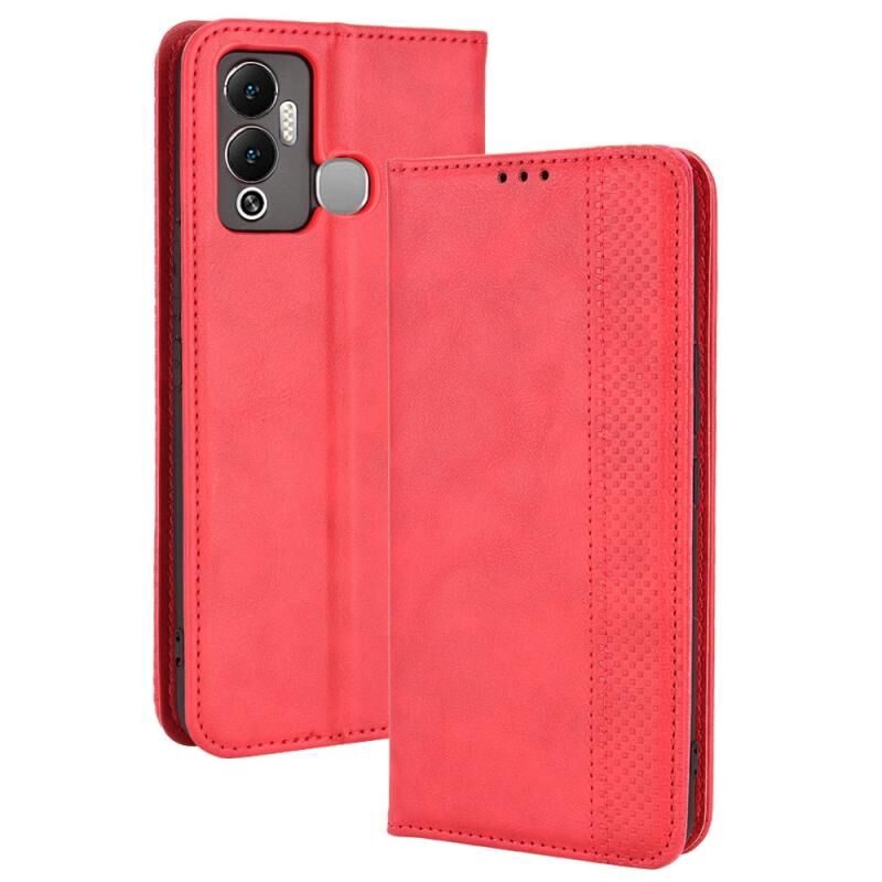 Για Infinix Hot 12 Play Μαγνητική πόρπη ρετρό υφή δερμάτινη θήκη τηλεφώνου (κόκκινο)